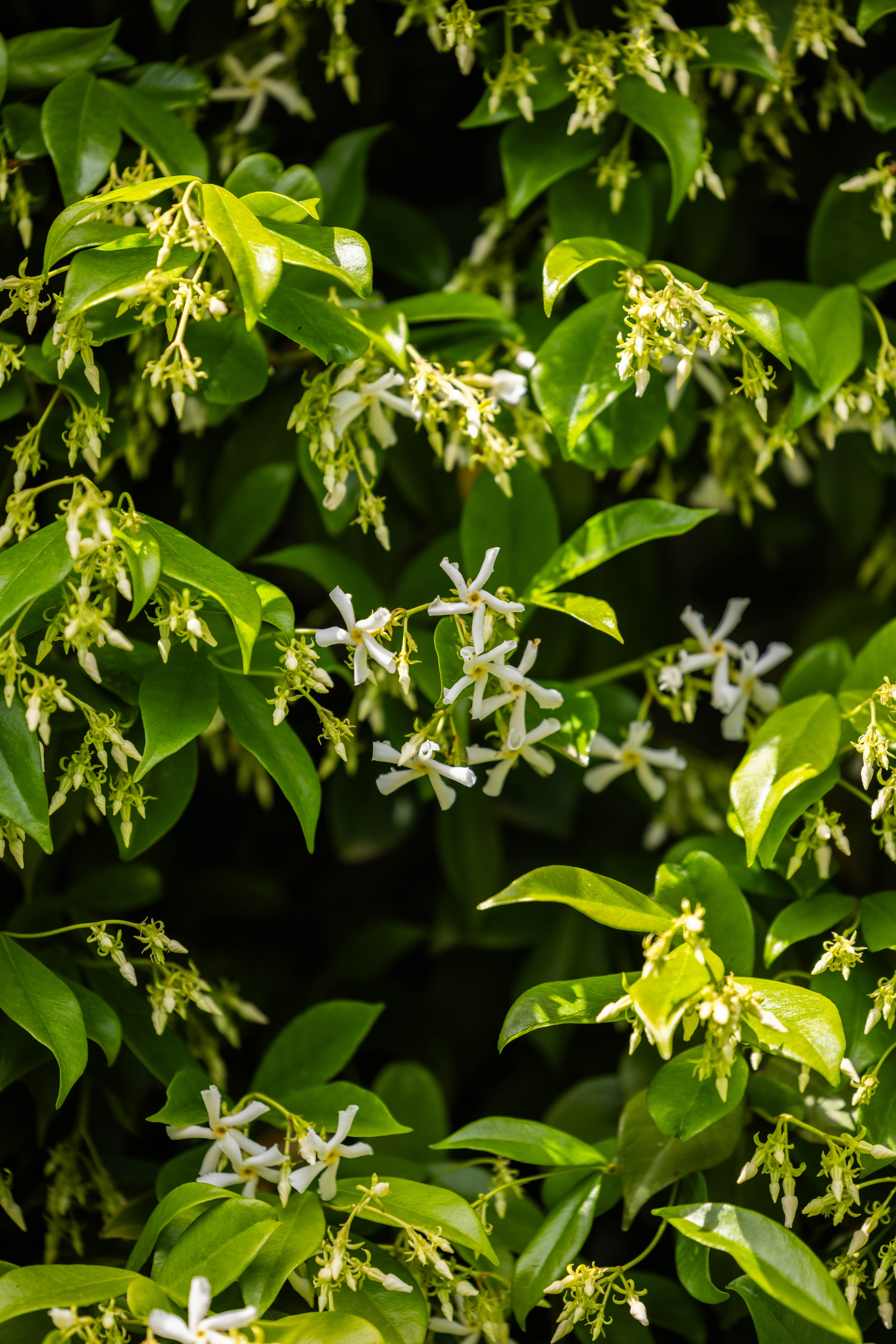 Small pinwheels, big perfume. The vines lace fences and trellises, releasing evening notes that pair perfectly with a glass on the terrace.