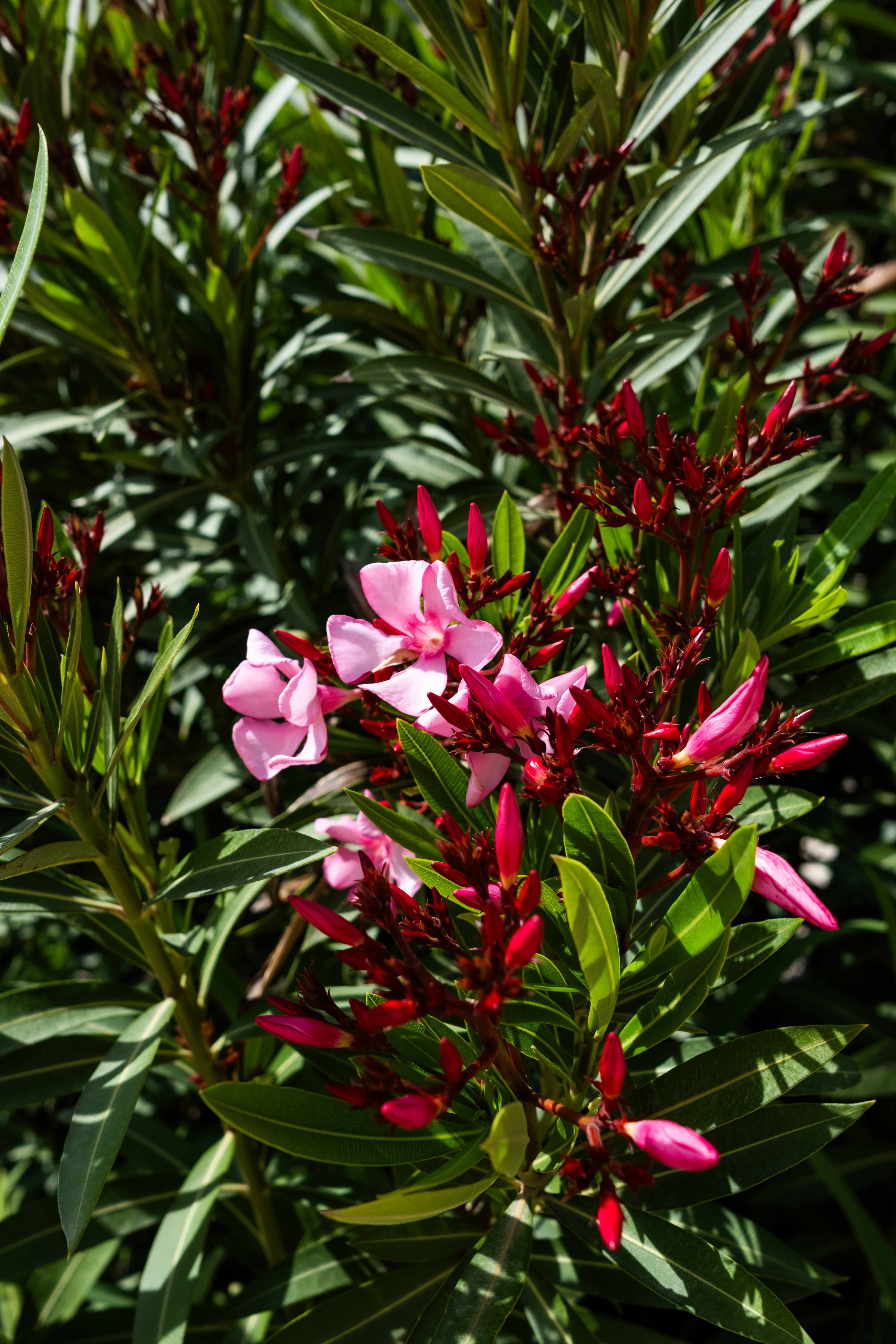 Glossy leaves, pink clusters, and a Riviera attitude—tough, elegant, and tireless through high summer. You’ll see them framing paths in confident brushstrokes.