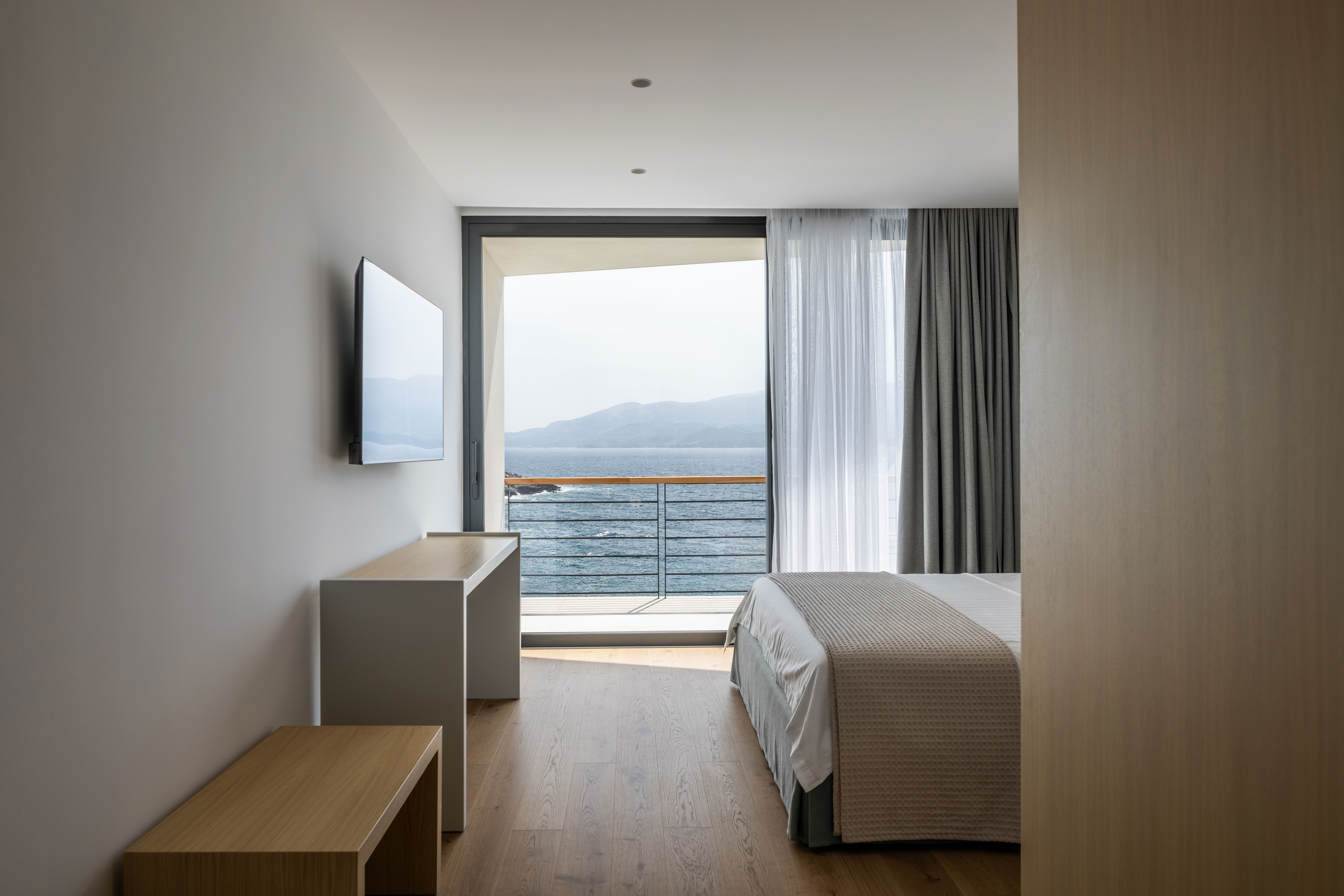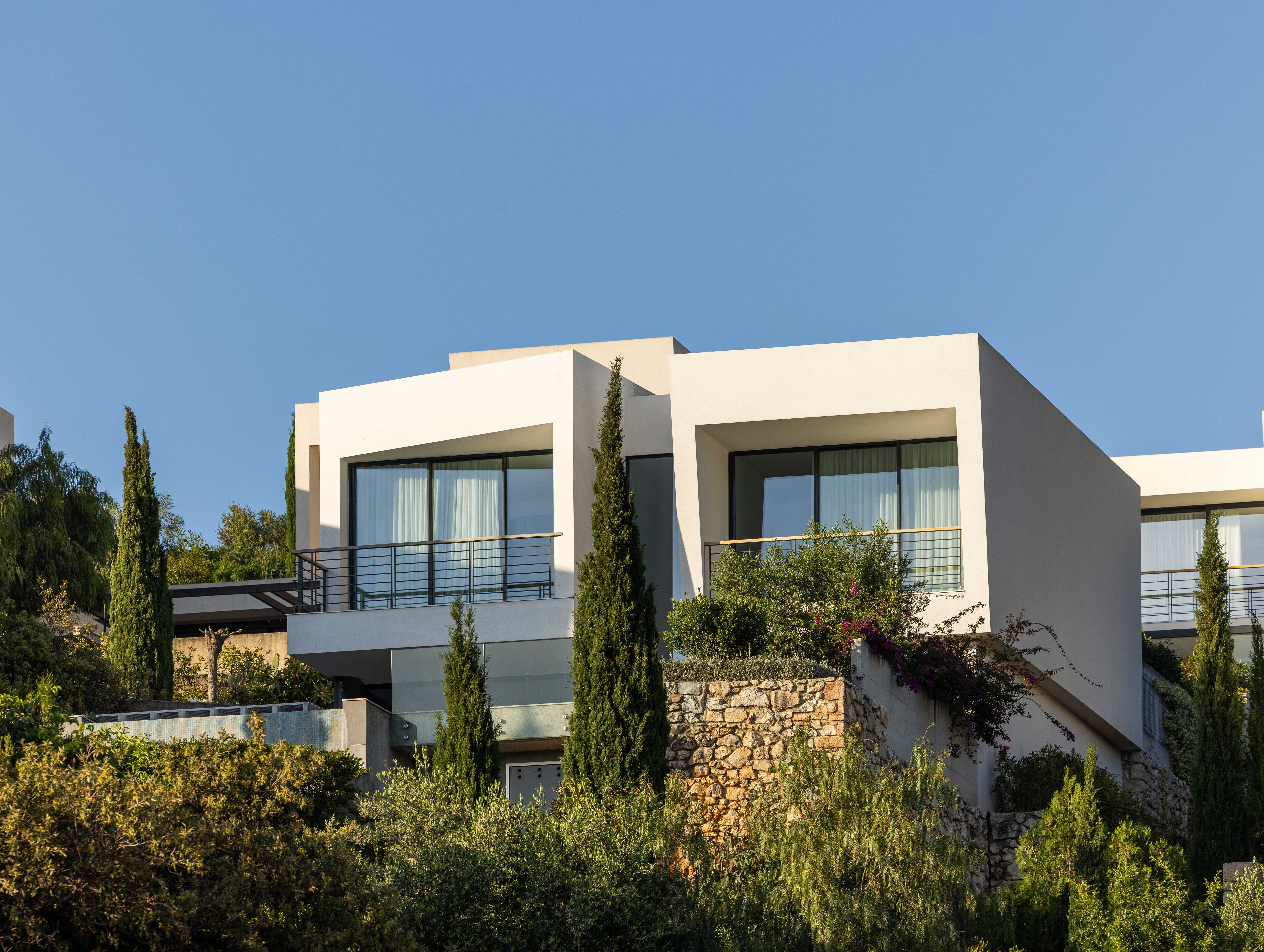 A hush of pines, Ionian blue beyond the glass. Villa 12 unfolds in linen-soft rooms and a shaded terrace made for long breakfasts and starlit evenings—quiet luxury, avash, avash.